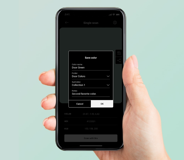 The Nix Toolkit app not only allows for storing and organizing, but also allows for effortless sharing of color libraries with colleagues.